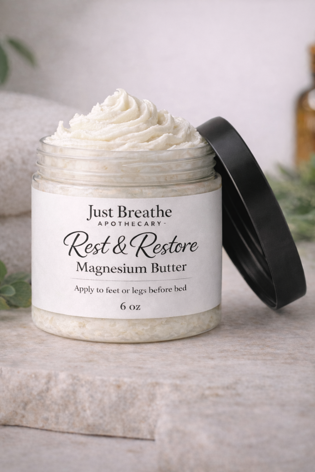 Unwind, relax, and prepare your body for deep rest with our Rest & Restore Magnesium Butter. This rich, whipped body butter is thoughtfully crafted to support nighttime relaxation while deeply nourishing the skin. Designed as part of your evening self-care ritual, it melts effortlessly into the skin, delivering comfort where your body needs it most.